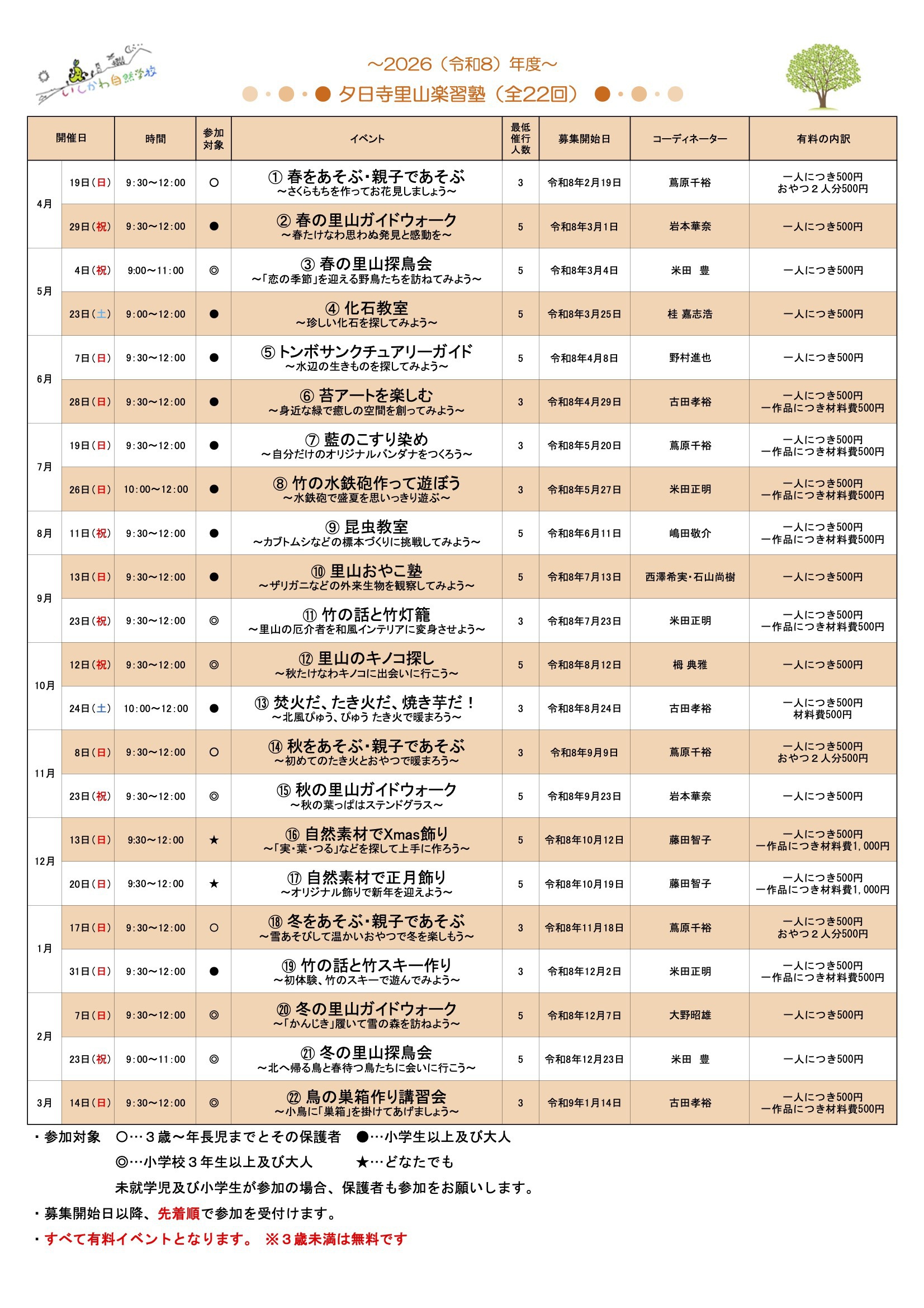 ★・★・★ 令和8年度 夕日寺里山楽習塾 ★・★・★