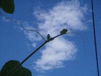 梅雨が明けました人は日ざしの厳しさにフウフウですがグリーンカーテンのツルはそんな中でも空を目指します