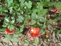 風に吹かれてウルシの深い紅葉の色キノコも負けていません