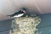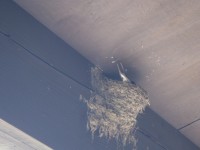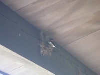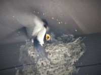 壊れた巣をもう一度作り出したツバメの夫婦。できあがった巣に交互に入りじっとしている時間が長くなったようです。いよいよ卵が。。。かしら