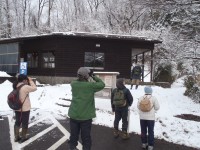 講師の米田豊さんとともに鳥を探し一面の雪化粧となった自然園を歩きました。双眼鏡を片手に、サギ類やジョウビタキ、イカル、シメ等々姿を見ることができたものや鳴き声など25種確認できました。