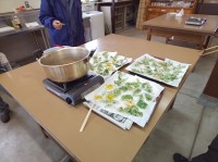 冬至とはいえ、さほどの寒さも感じられない穏やかな日となりました。参加者の皆さんとお正月や今日作る門松の話の後里山を歩き、飾りにつかえそうな常緑の葉を集めました。工房に戻った後は、それぞれに植物を活け...