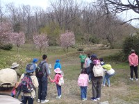 ヤエザクラが満開となった日、講師の松枝章氏とともに21名の参加者が春の森を歩いてくださいました風はまだ冷たくもありましたが春の訪れを待ちわびた草木や生き物たちとの遭遇を楽しんでいただきました